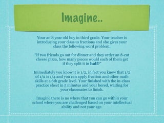 Golfers dinosaurs come out to help 6-year-old Woodstock boy battling cancer. It is a play-based school. Music is another non-academic area that parents may not consider as they wonder what they can do to keep their gifted child stimulated at home.